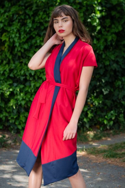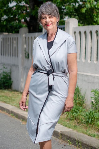 Poznámka: Při šití modelu na zakázku si lze barvu modelu vybrat dle vzorníku. Případě model nakombinovat z více barev. Tento výběr probíhá při osobní návštěvě v showroomu. K modelu dodáváme pásek v barvě / barvách šatů.