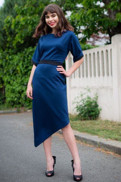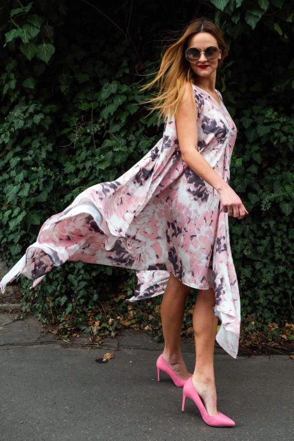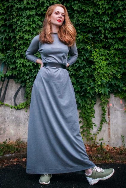 Pohodlně elegantní dlouhé šaty ke kotníkům, zdobí řasení ramene a sukně. Které krásně spolupracuje s lehkou vzdušnou látkou. Díky tomu vzniká velmi něžný ženský dojem. Asymetricky model má jeden rukáv, ten je prakticky doplněný o zip u zápěstí. Model je se zipem v boku a eleganci i sexappeal doplňuje rozparek.